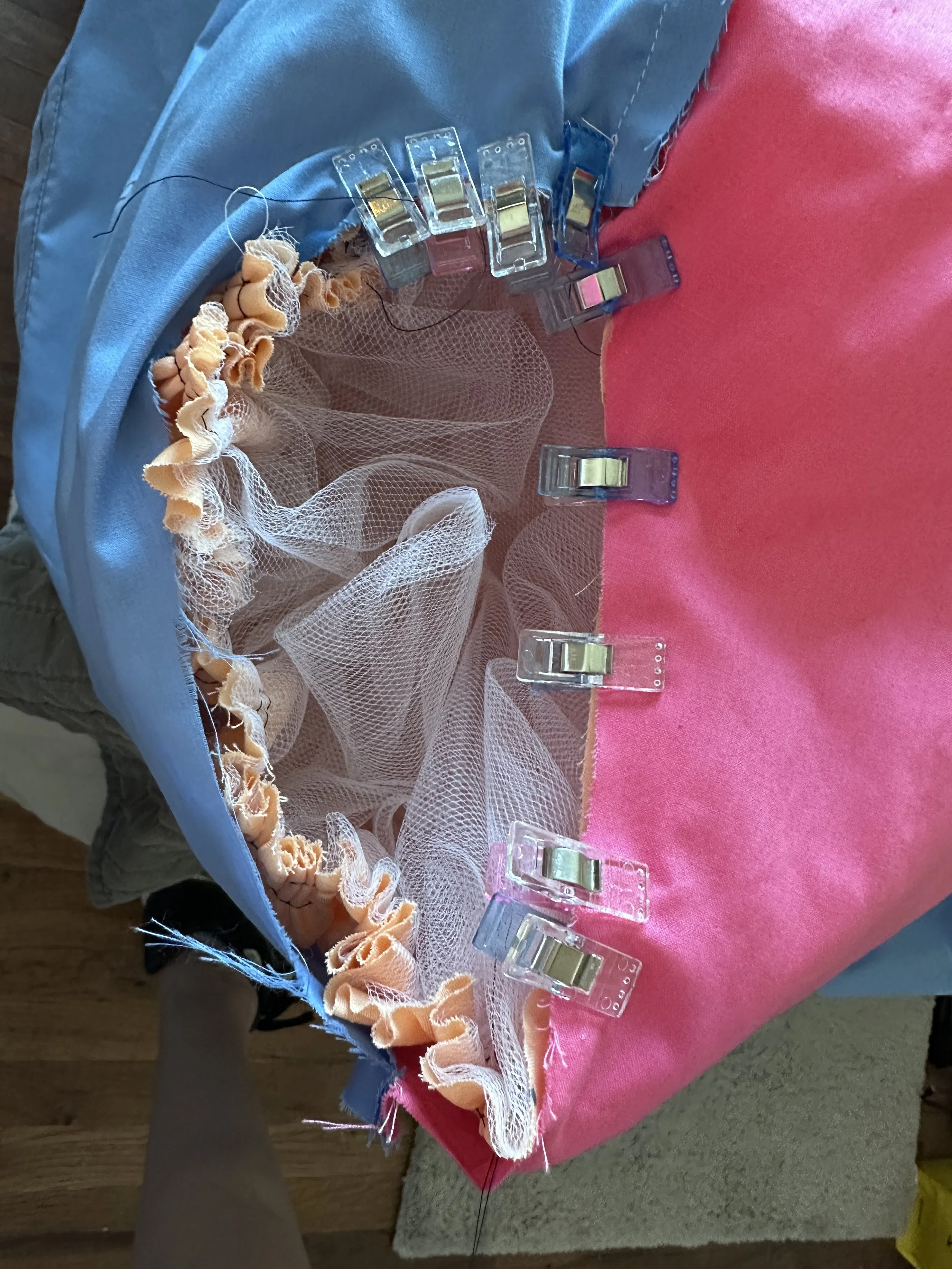 After that I wasn’t sure what size to cut, so I just cut size A. I started sewing in the gathering stitches at the top of the sleeve when I ran out of thread. Taking it as a sign, I shut it down for the day.