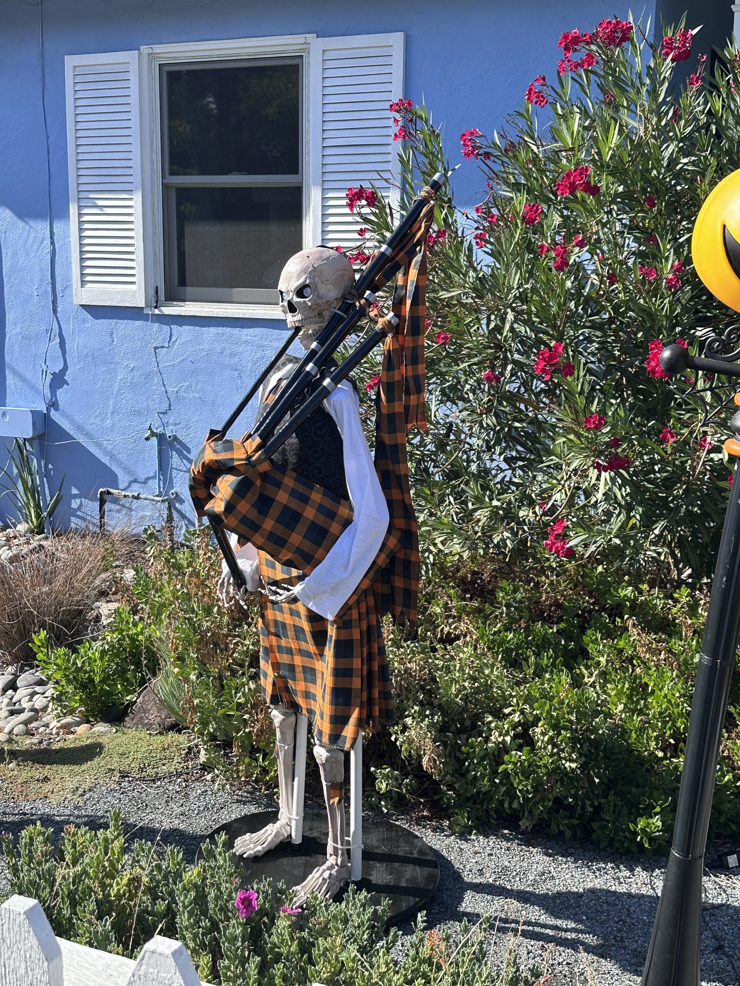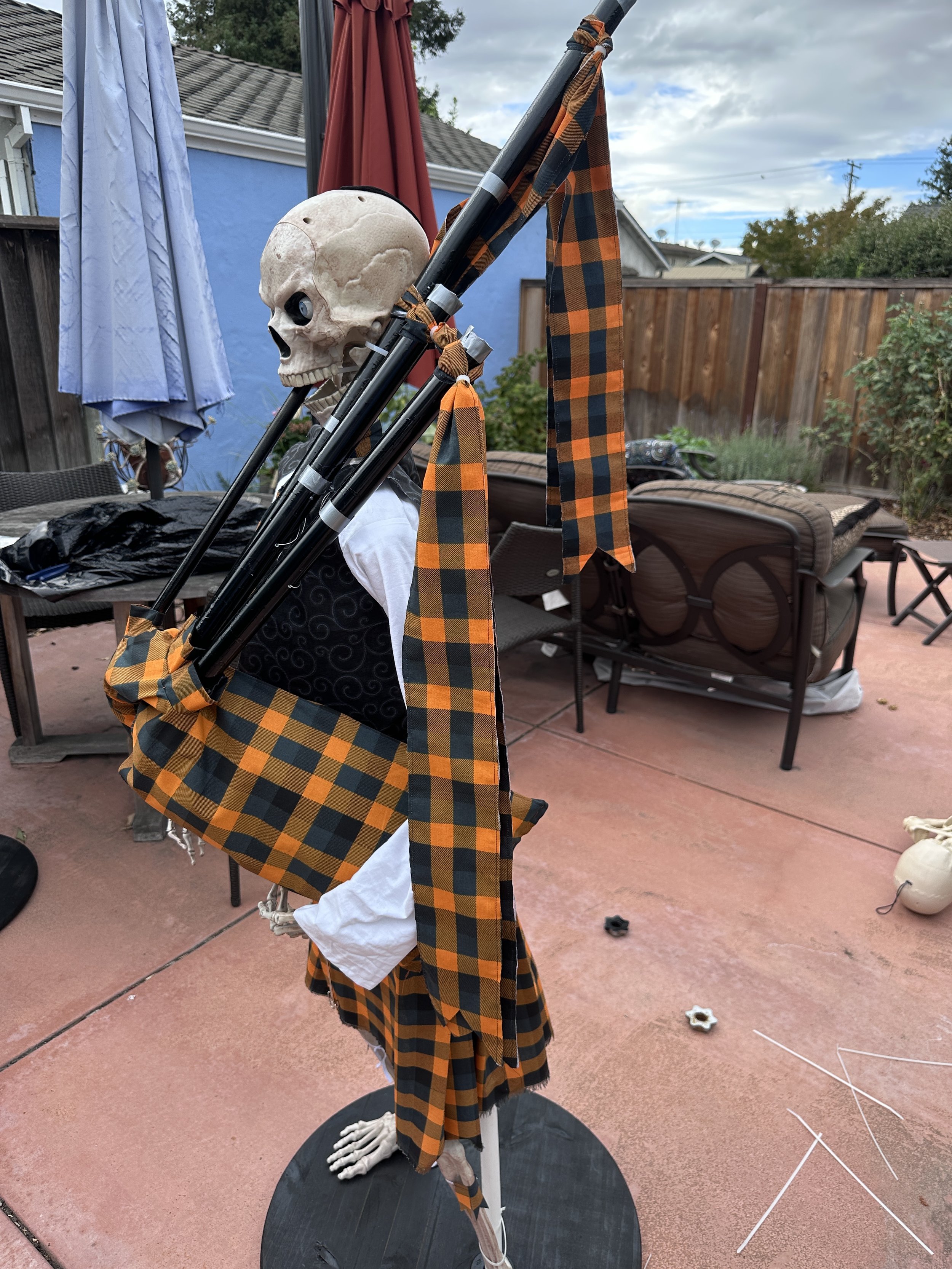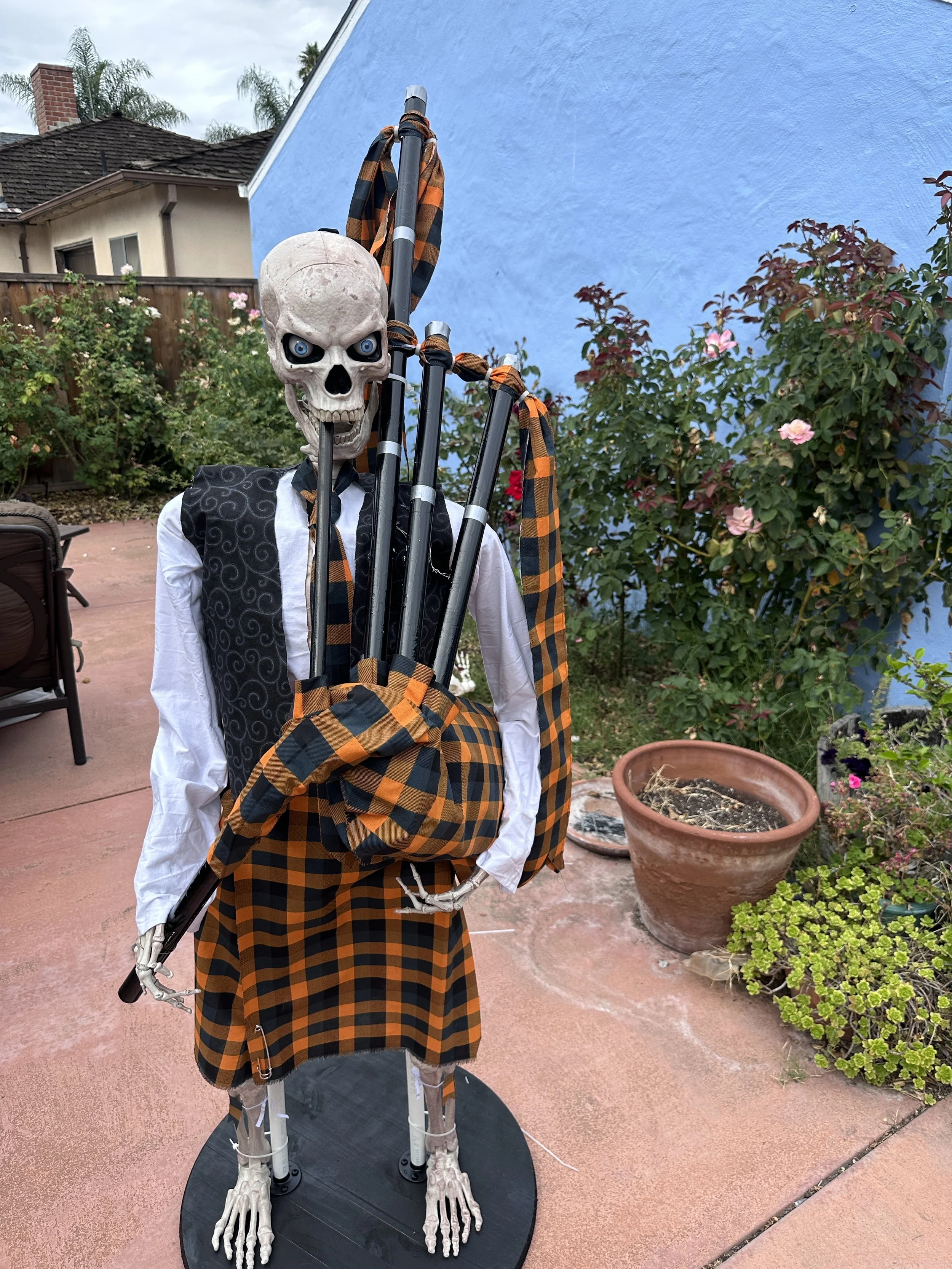 In the spring of 2025, I began to get the idea of creating a halloween pipe band. Absolutely crazy, but kinda cool if it worked. The biggest issues I saw were getting my skeletons to stand upright, but stable, and attaching fake bagpipes to a skeleton, taking into account gravity and a lack of real arms to hold them.