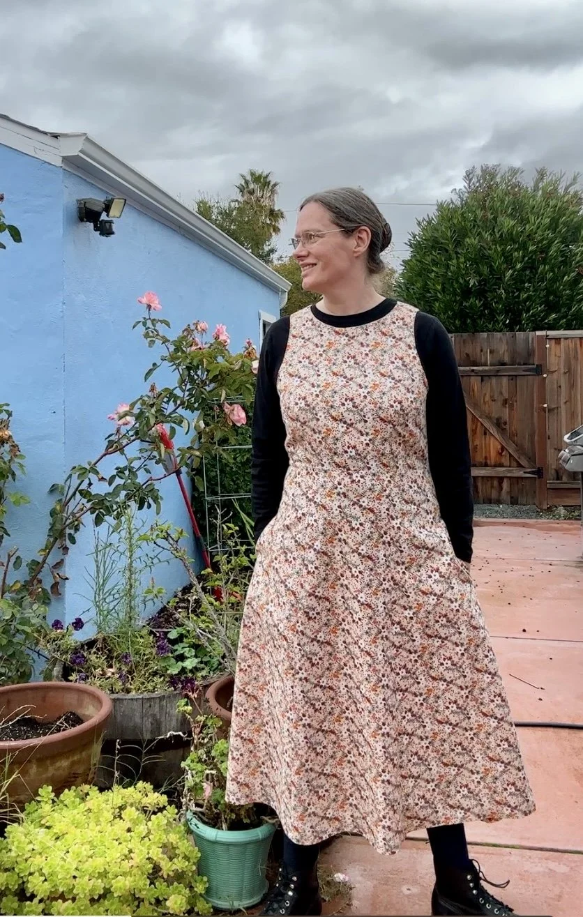 For my fabric I chose a pretty floral cotton that I found in Joann’s (I’m so gutted about Joann’s), and for the lining I did a plain white cotton. I decided I wanted to make the skirt portion of the dress an A-line panel skirt rather than the gathered skirt that Janelle does, and because of my slouchy posture and naturally high waist I tried to pattern-hack the top portion of the dress to fit better. I’m still a total beginner at drafting to fit my own body, but the best video on making a bodice block from an existing pattern I’ve found on this is this video by The Closet Historian. If you haven’t checked her out, you should. She’s amazing!