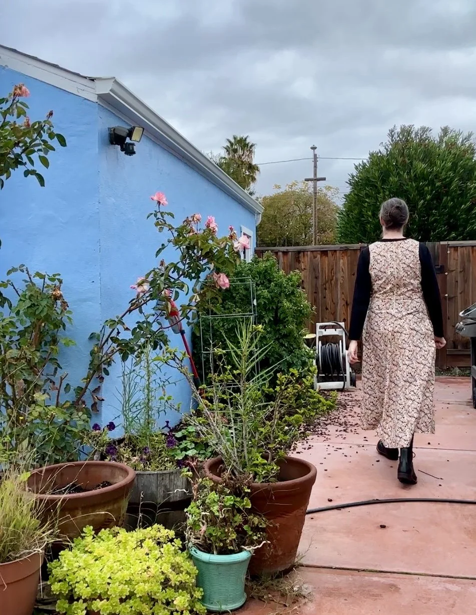 The finished dress. Look…pockets! And I really need to clean up my yard.
