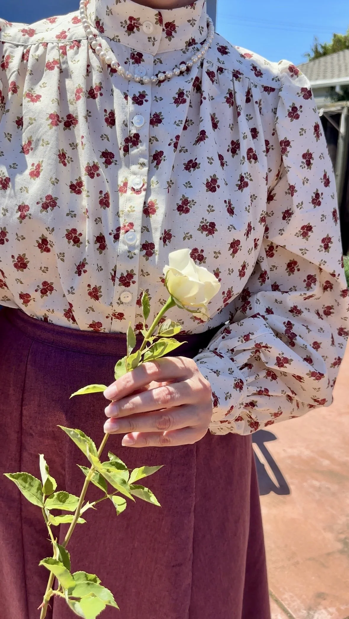 Overall, I absolutely LOVE this blouse, and despite my mistakes I felt it came out really well. It ended up a much better fit than my original oversized blouse. I got this fabric from Joann’s when I found out they were closing, and I love that it’s breathable and really lightweight.