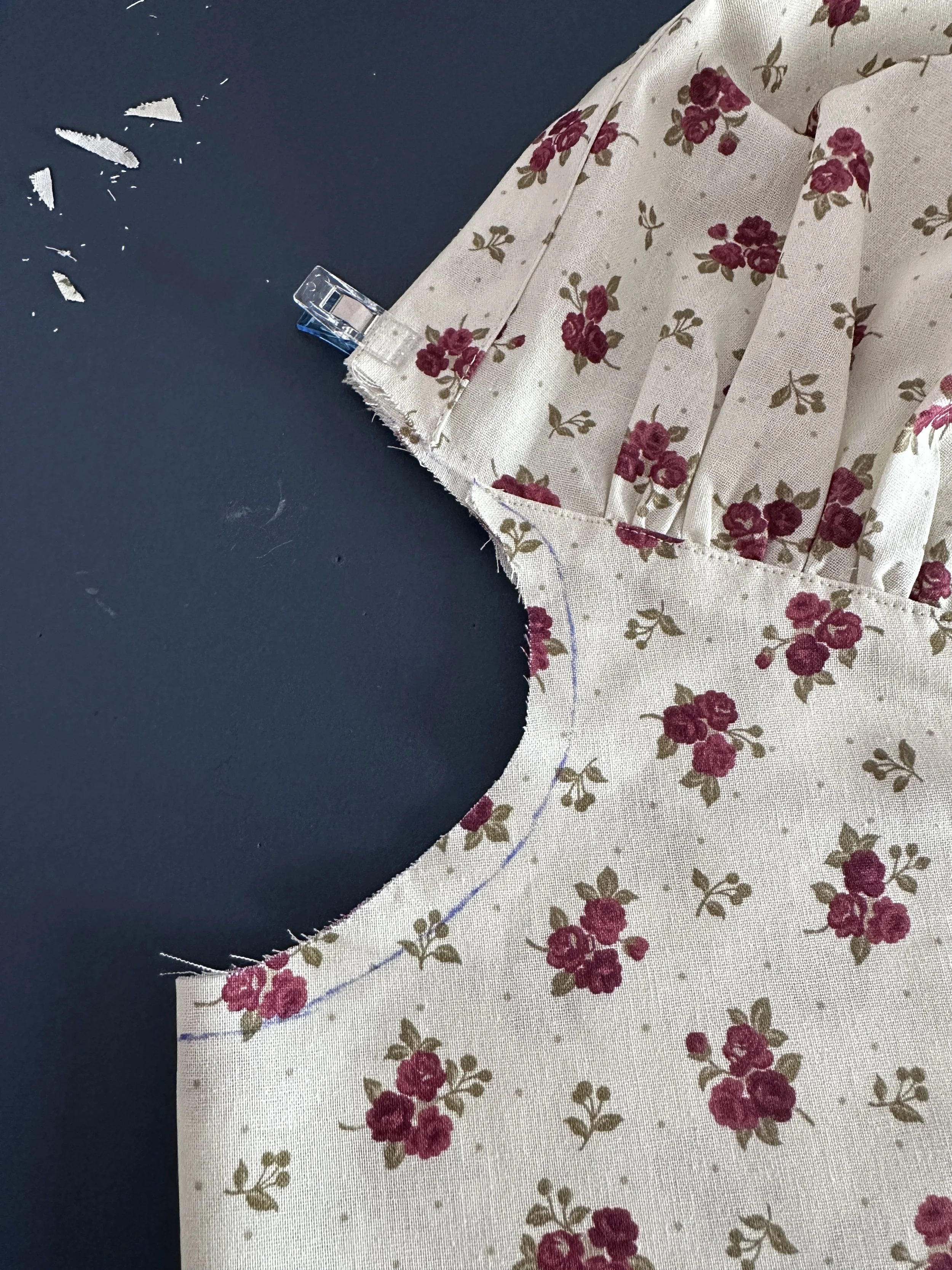The other hack is for the gathering stitches for the sleeves and back. When I put in the gathering stitches, I actually secured one end and only worked from the other end. It means I wasn’t fighting with two ends that could potentially come loose. That way, the gathers were much neater and exactly where I wanted them.